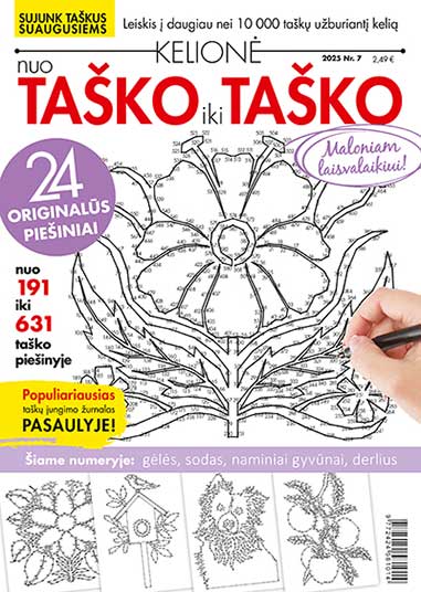 Naujiena Lietuvoje! Populiariausias pasaulyje taškų jungimo žurnalas suaugusiems! Atitrūkite nuo kasdienybės. Leiskitės į daugiau nei 10 000 taškų užburiantį kelią ir nupieškite net 24 nuostabius piešinius! Žurnalas NUO TAŠKO IKI TAŠKO – jūsų maloniam atokvėpiui! Periodiškumas – 8 numeriai per metus (sausio, kovo, balandžio, birželio, liepos, rugsėjo, spalio ir gruodžio mėnesiais). Formatas – A4.